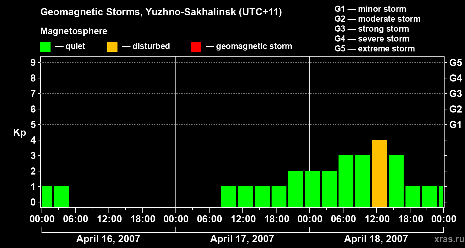 Geomagnetic storms in Yuzhno-Sakhalinsk — Apr 18, 2007