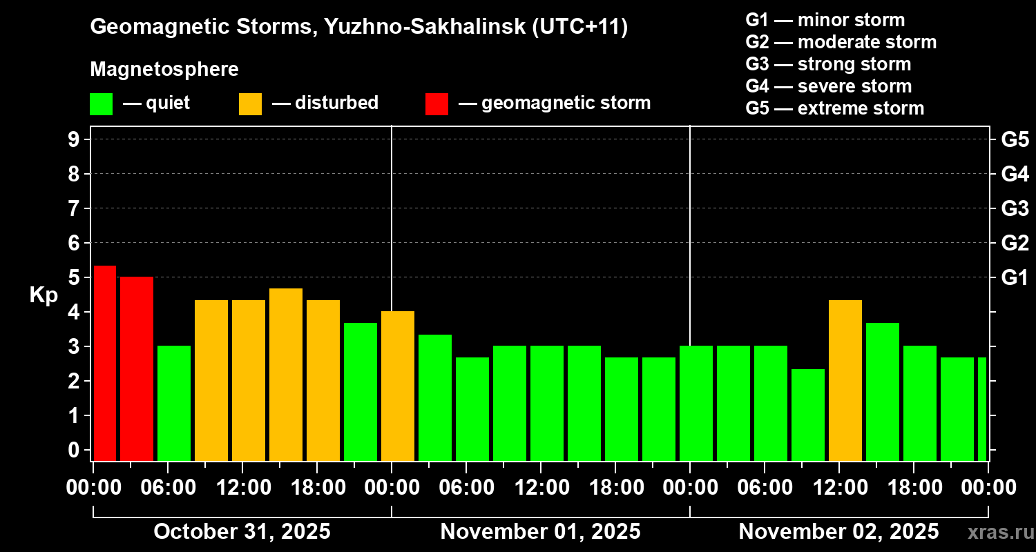 Geomagnetic storms in Yuzhno-Sakhalinsk — Nov 02, 2025