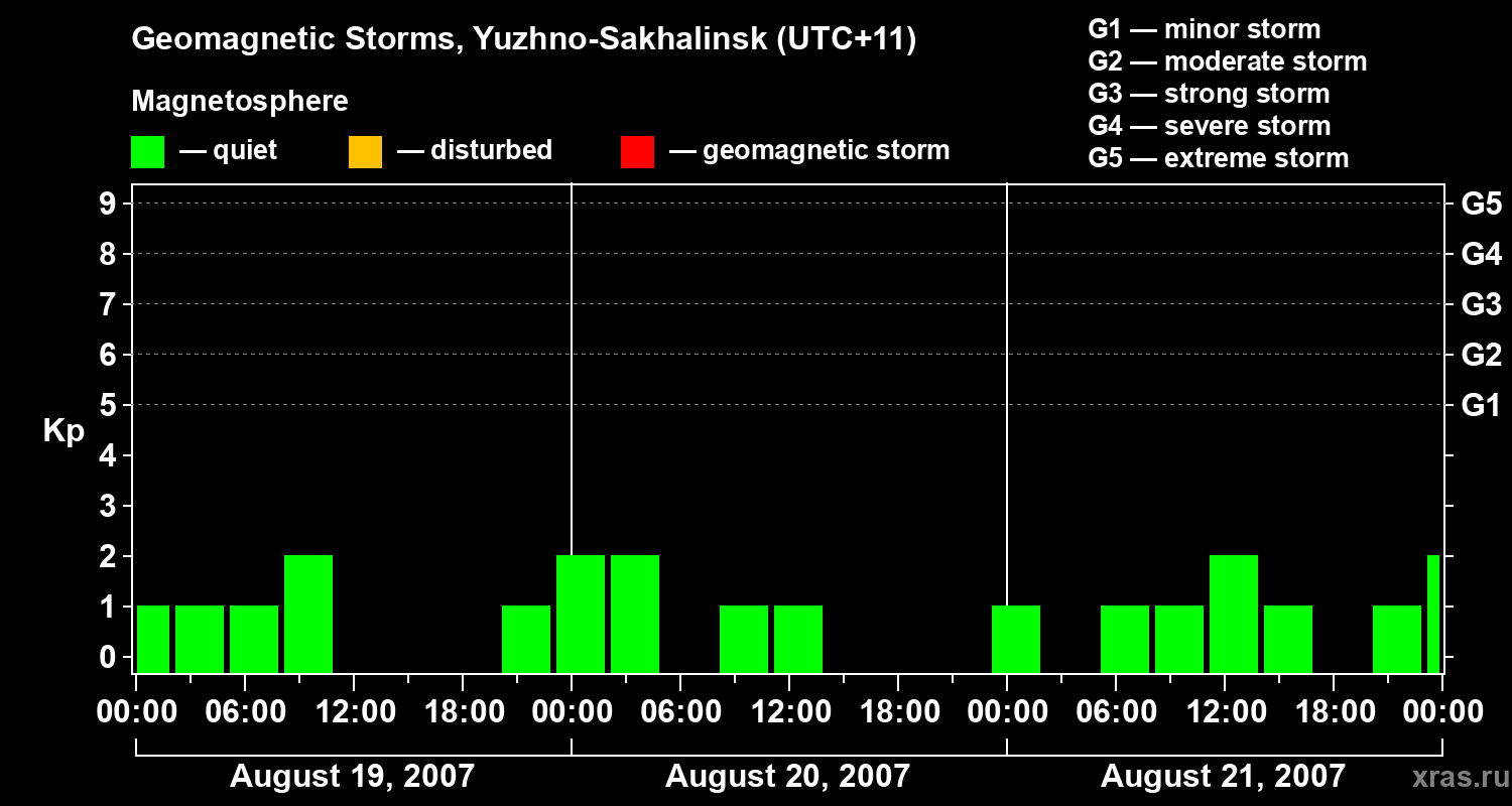 Geomagnetic storms in Yuzhno-Sakhalinsk — Aug 21, 2007