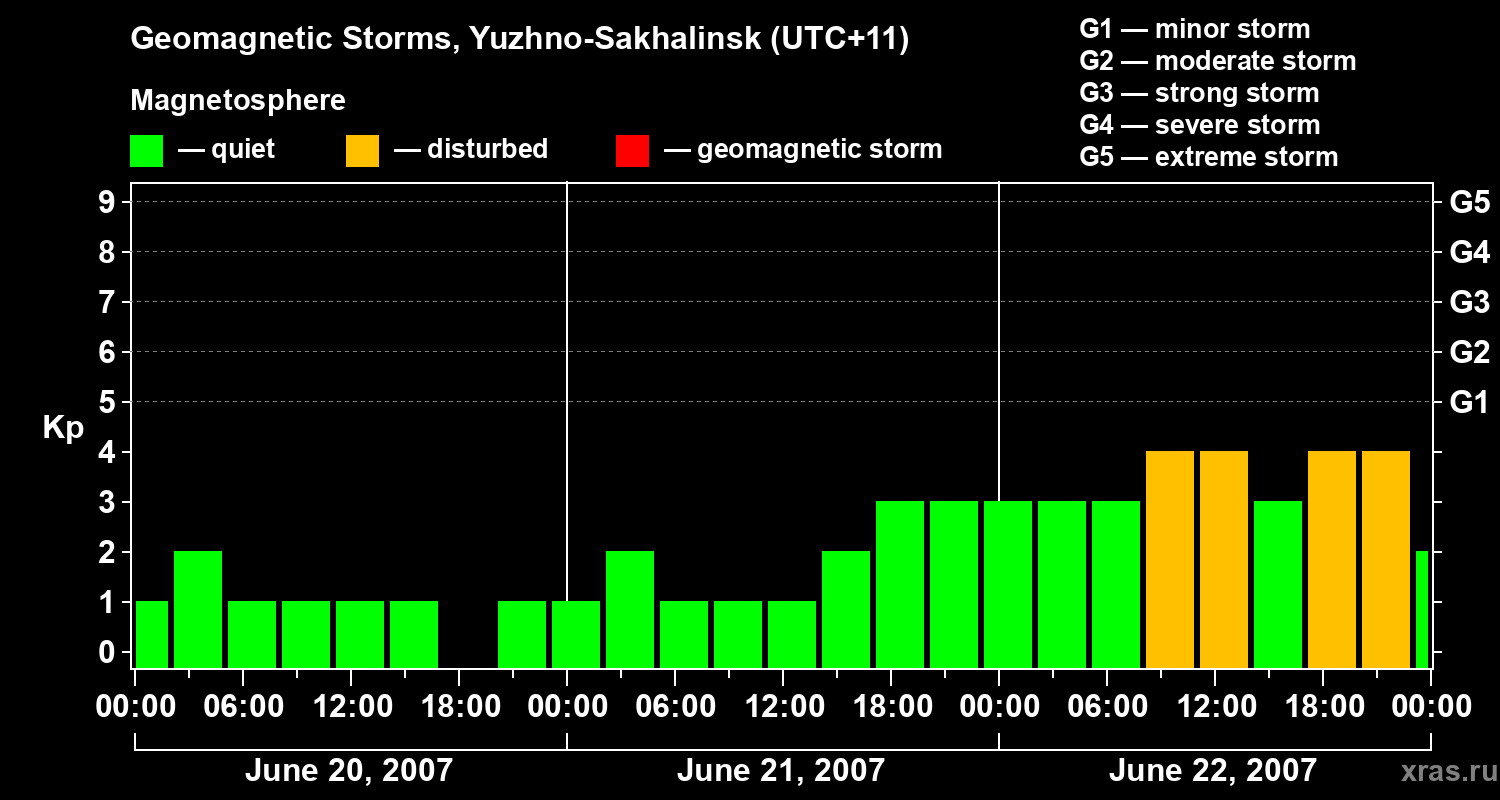 Geomagnetic storms in Yuzhno-Sakhalinsk — Jun 22, 2007