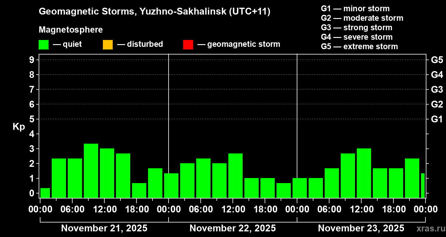 Geomagnetic storms in Yuzhno-Sakhalinsk on Nov 23, 2025