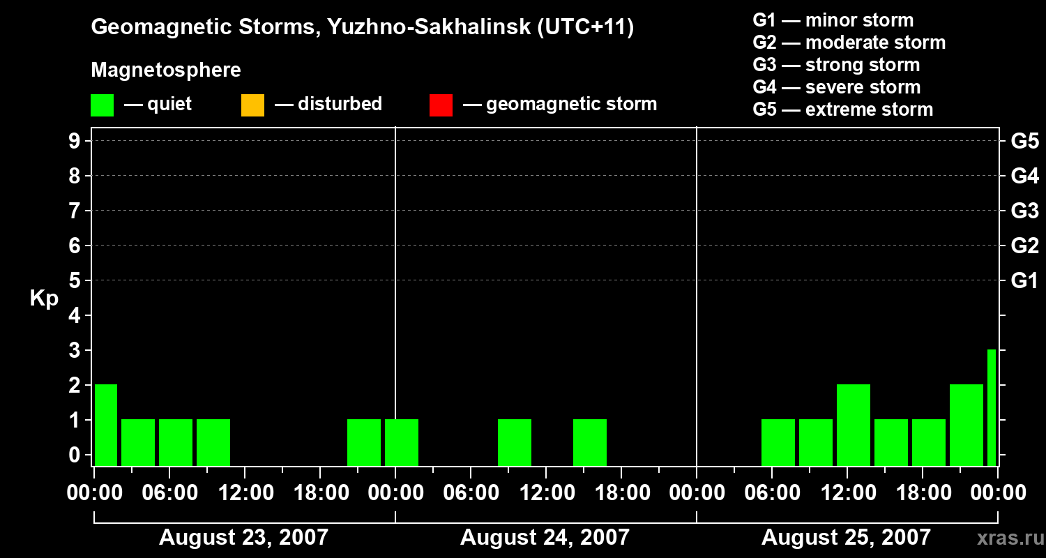 Geomagnetic storms in Yuzhno-Sakhalinsk — Aug 25, 2007