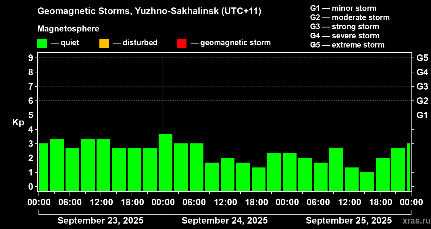 Geomagnetic storms in Yuzhno-Sakhalinsk on Sep 25, 2025