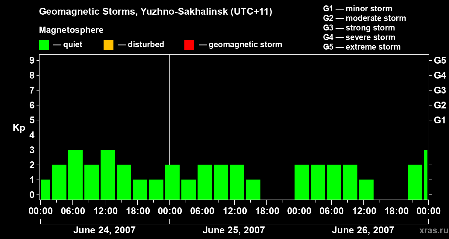 Geomagnetic storms in Yuzhno-Sakhalinsk — Jun 26, 2007