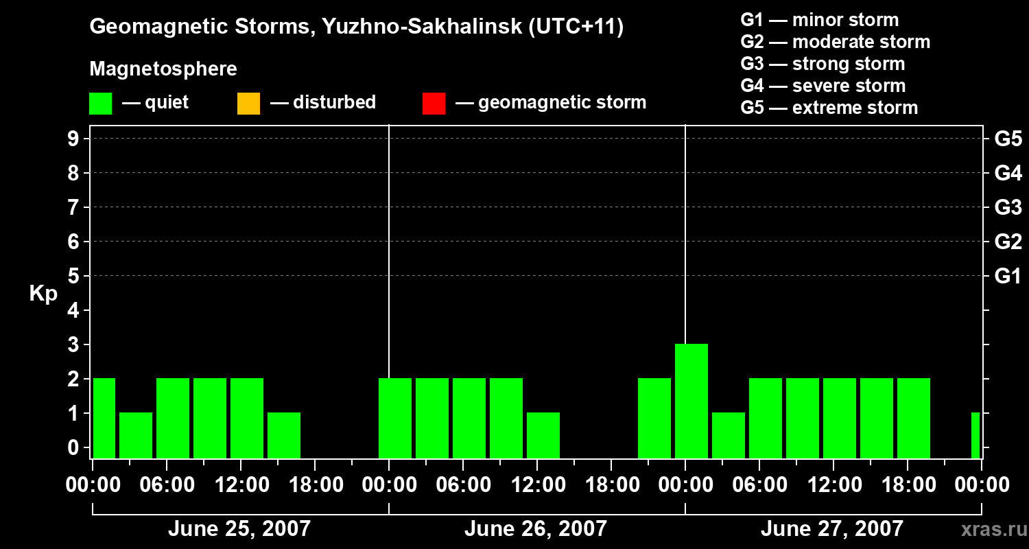 Geomagnetic storms in Yuzhno-Sakhalinsk — Jun 27, 2007