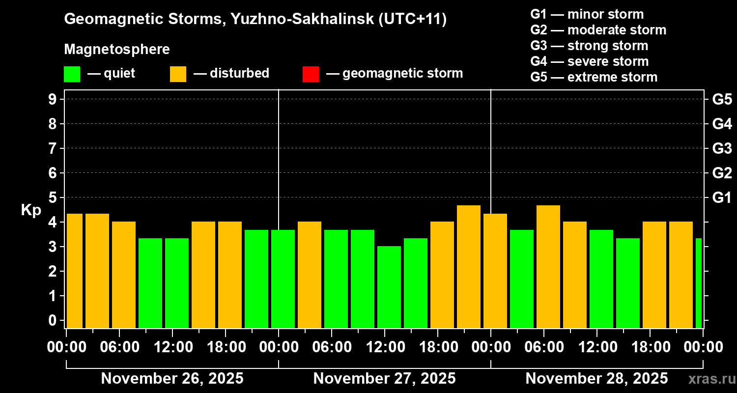 Geomagnetic storms in Yuzhno-Sakhalinsk on Nov 28, 2025