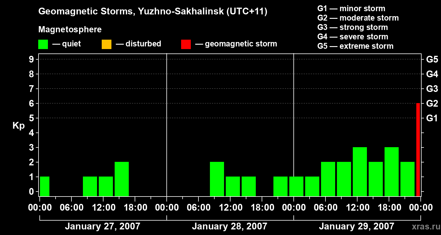 Geomagnetic storms in Yuzhno-Sakhalinsk — Jan 29, 2007
