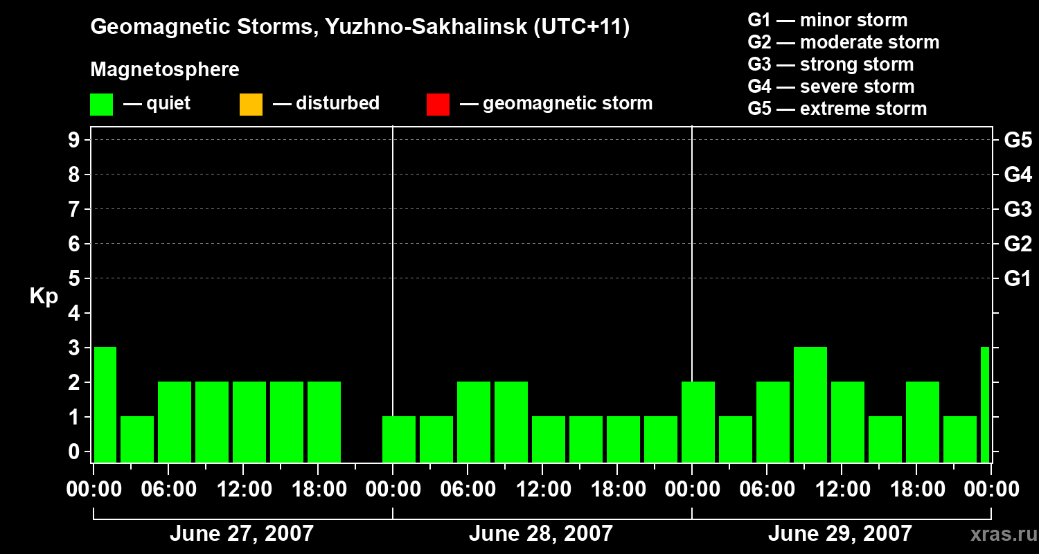 Geomagnetic storms in Yuzhno-Sakhalinsk — Jun 29, 2007