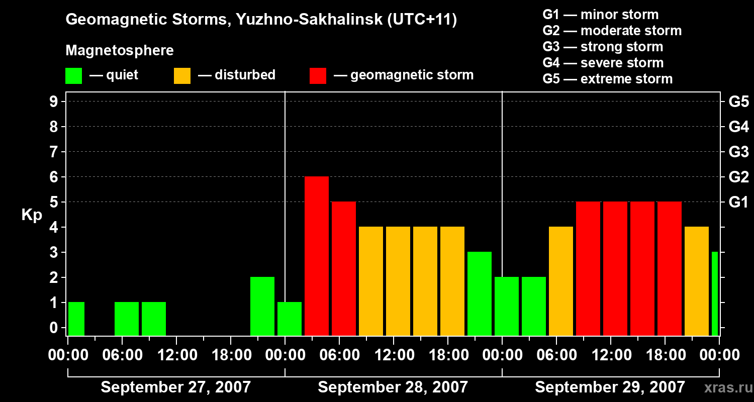 Geomagnetic storms in Yuzhno-Sakhalinsk — Sep 29, 2007