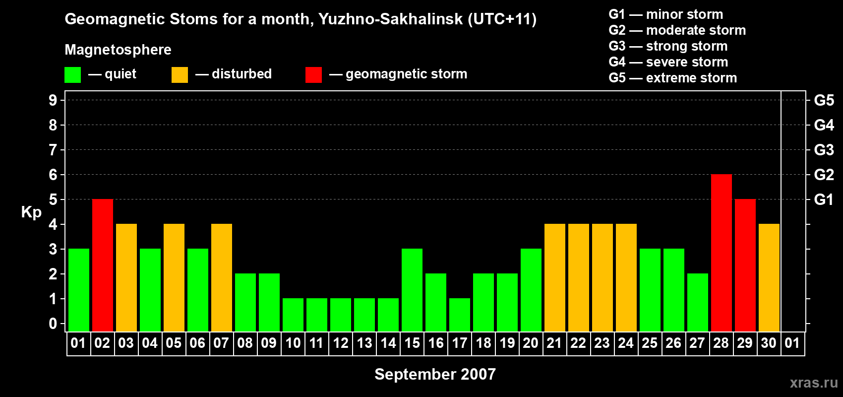 Geomagnetic storms in Yuzhno-Sakhalinsk — Sep 30, 2007