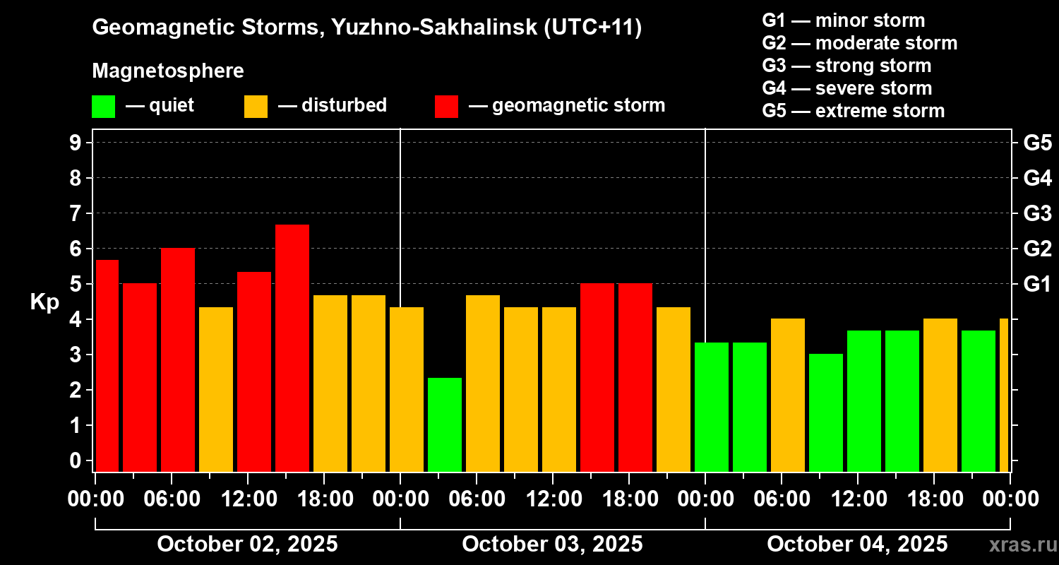 Geomagnetic storms in Yuzhno-Sakhalinsk — Oct 04, 2025
