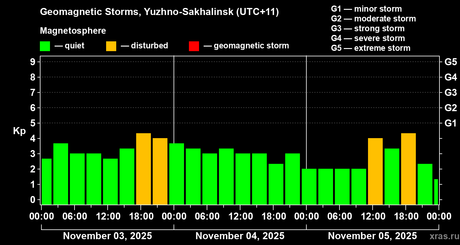 Geomagnetic storms in Yuzhno-Sakhalinsk on Nov 05, 2025