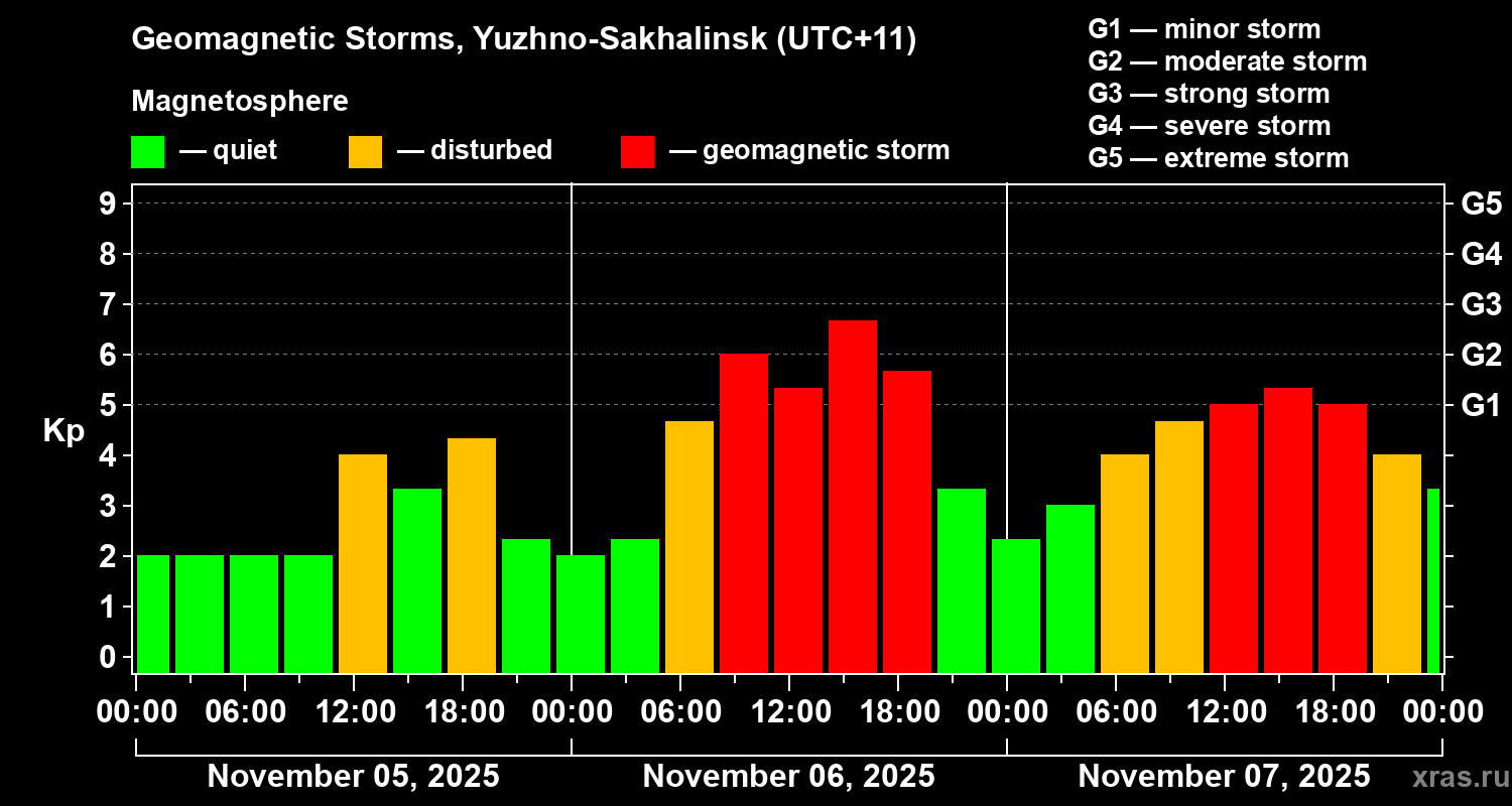 Geomagnetic storms in Yuzhno-Sakhalinsk — Nov 07, 2025