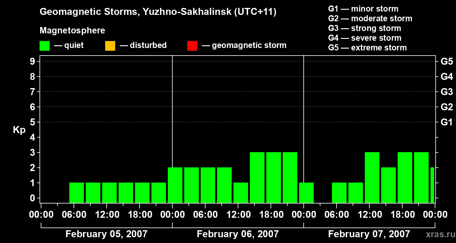 Geomagnetic storms in Yuzhno-Sakhalinsk on Feb 07, 2007