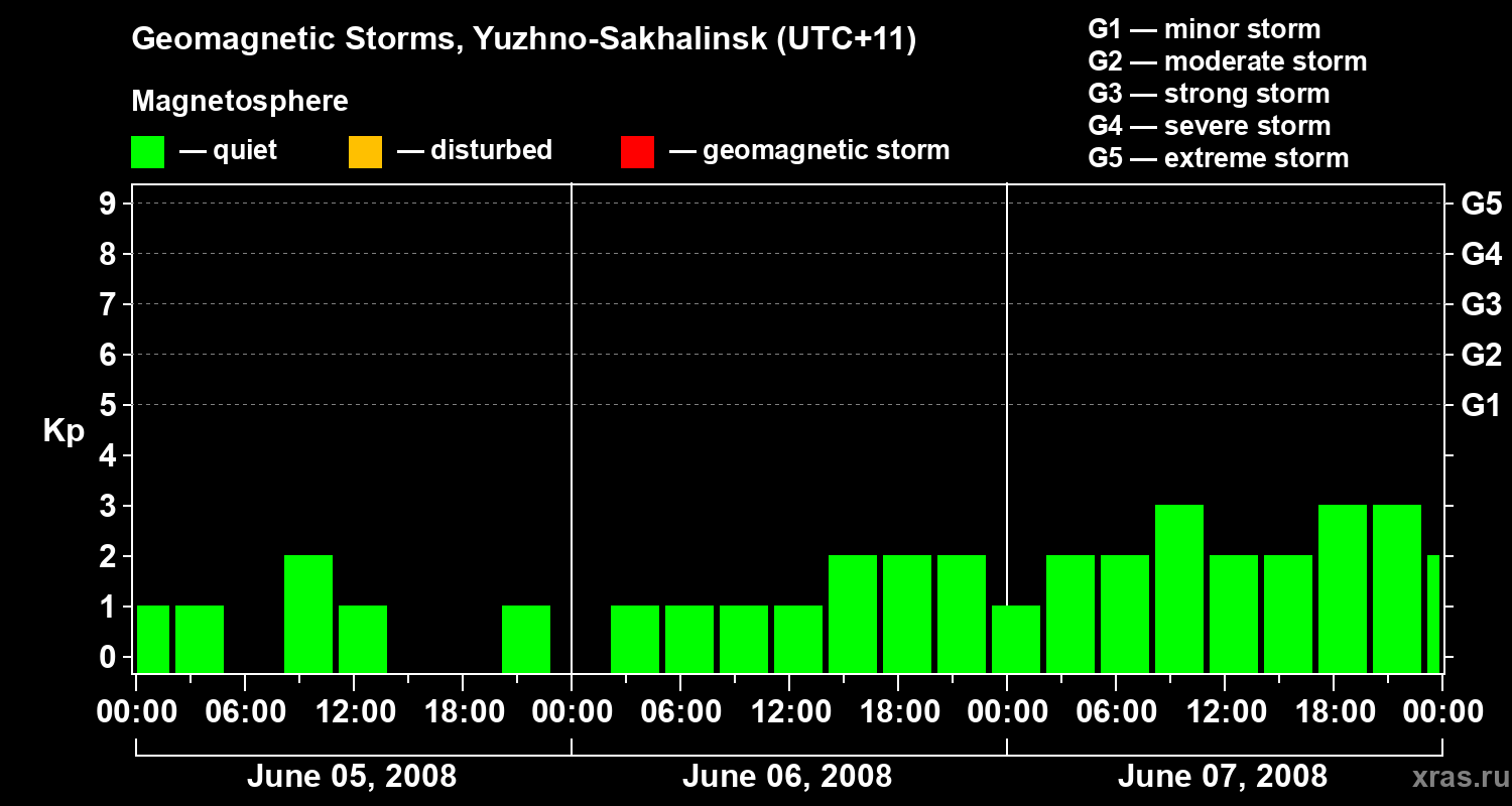 Geomagnetic storms in Yuzhno-Sakhalinsk — Jun 07, 2008