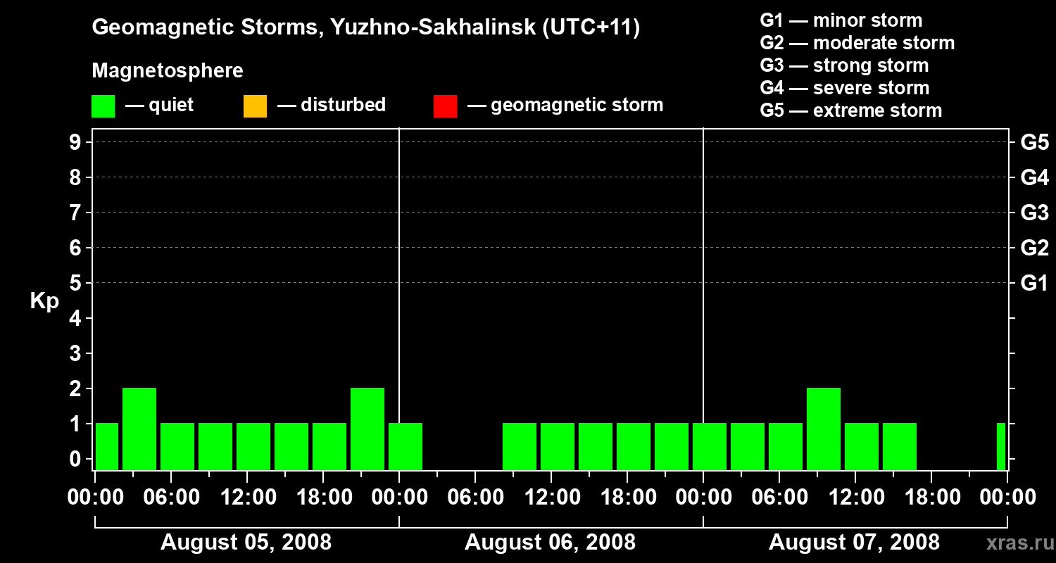 Geomagnetic storms in Yuzhno-Sakhalinsk on Aug 07, 2008