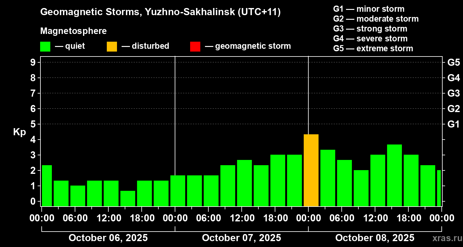 Geomagnetic storms in Yuzhno-Sakhalinsk on Oct 08, 2025