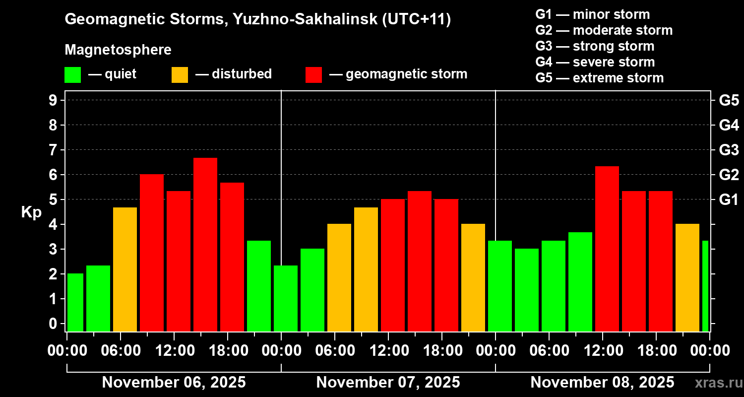 Geomagnetic storms in Yuzhno-Sakhalinsk — Nov 08, 2025