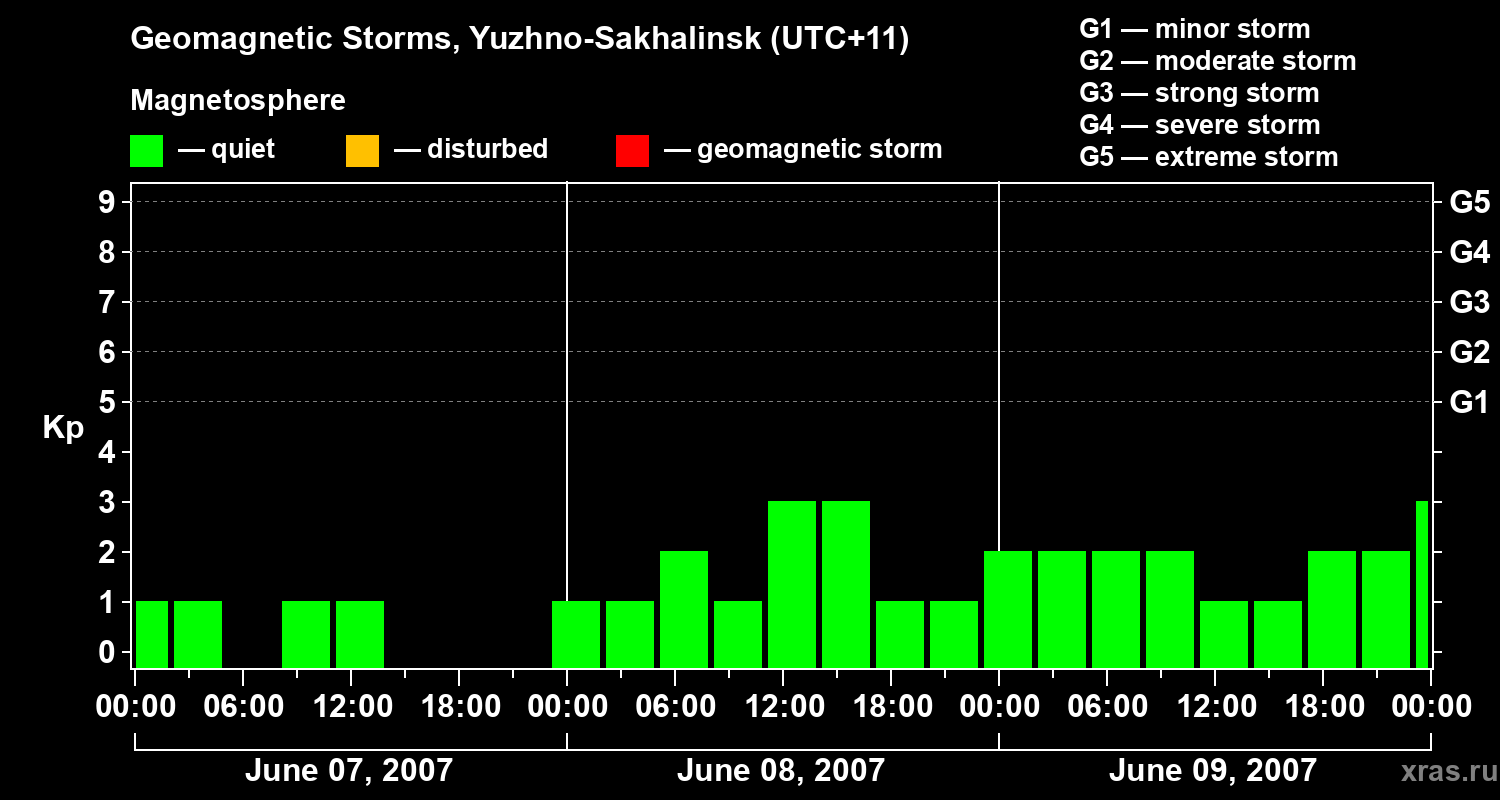 Geomagnetic storms in Yuzhno-Sakhalinsk — Jun 09, 2007