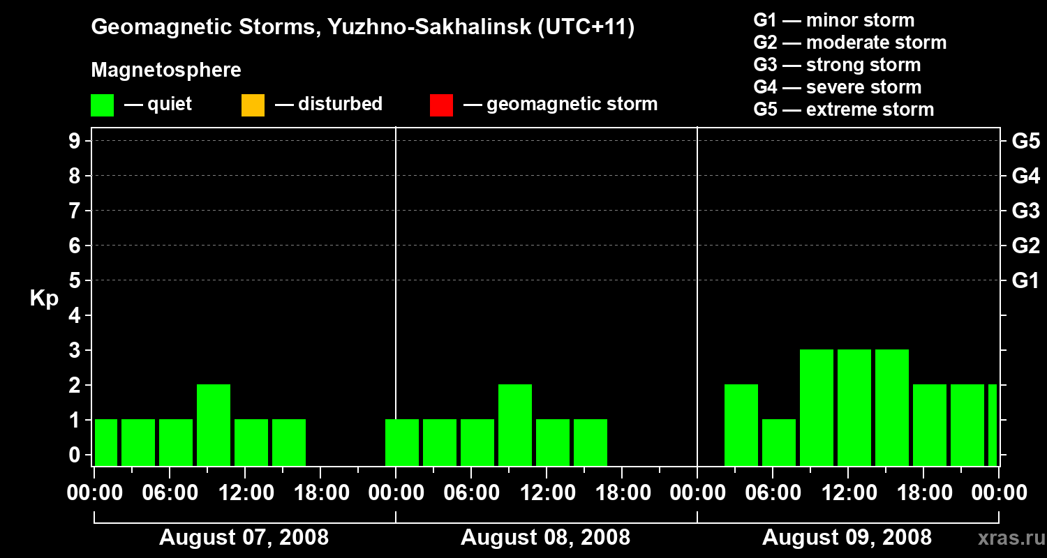 Geomagnetic storms in Yuzhno-Sakhalinsk — Aug 09, 2008
