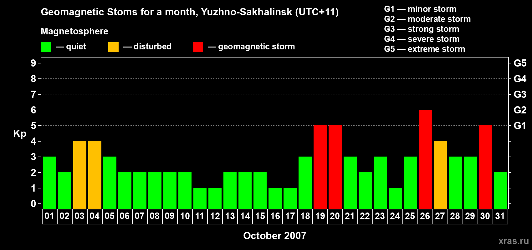 List of magnetic storms in October 2007