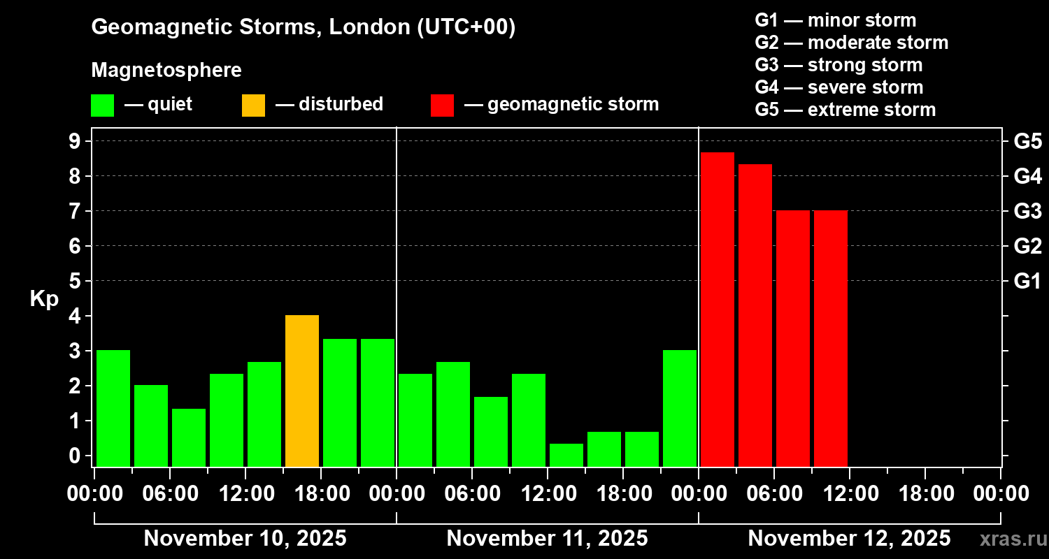 Geomagnetic storms in London on Nov 12, 2025
