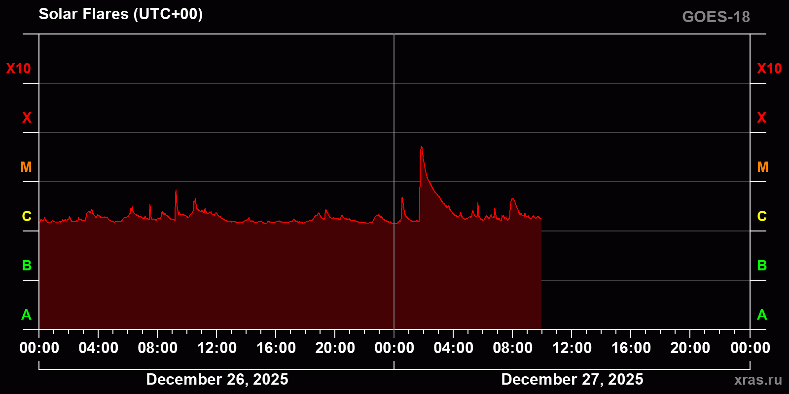 Interestingly, the December 8 event and today's event apparently occurred in the same region of the Sun, which was located on the western edge of the Sun in early December. Since then, the Sun has completed approximately two-thirds of its rotation, and the same active center, having passed along the far side, has returned to the side visible from Earth—this time, on the eastern edge.
