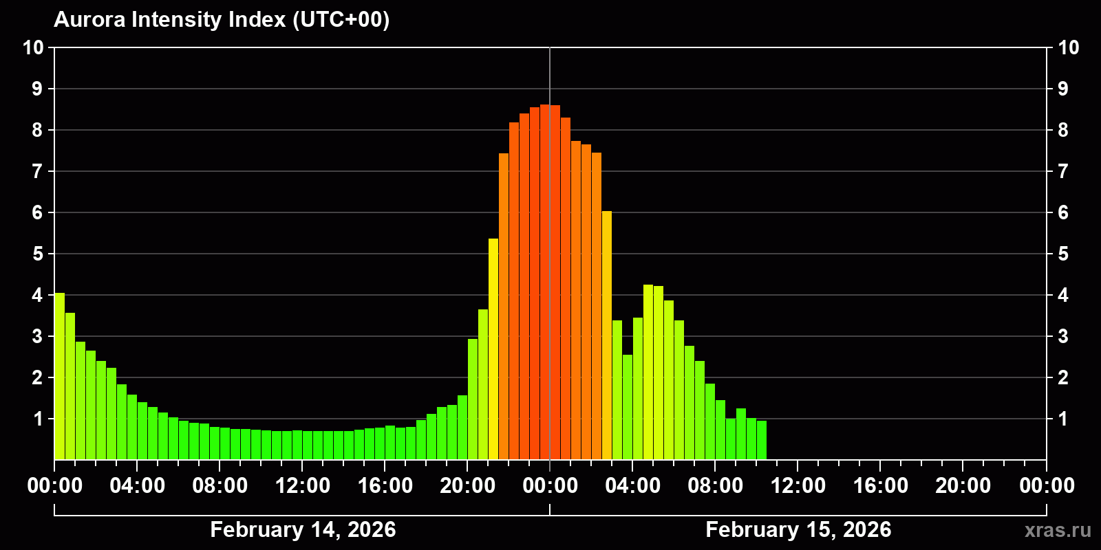 The total duration of the disturbance period that began overnight could be up to two days, but with a highly uneven impact: isolated bursts and short storms during this period may alternate with fairly prolonged "green" periods. A storm reaching a level above G2 (moderate) during this period is considered unlikely.