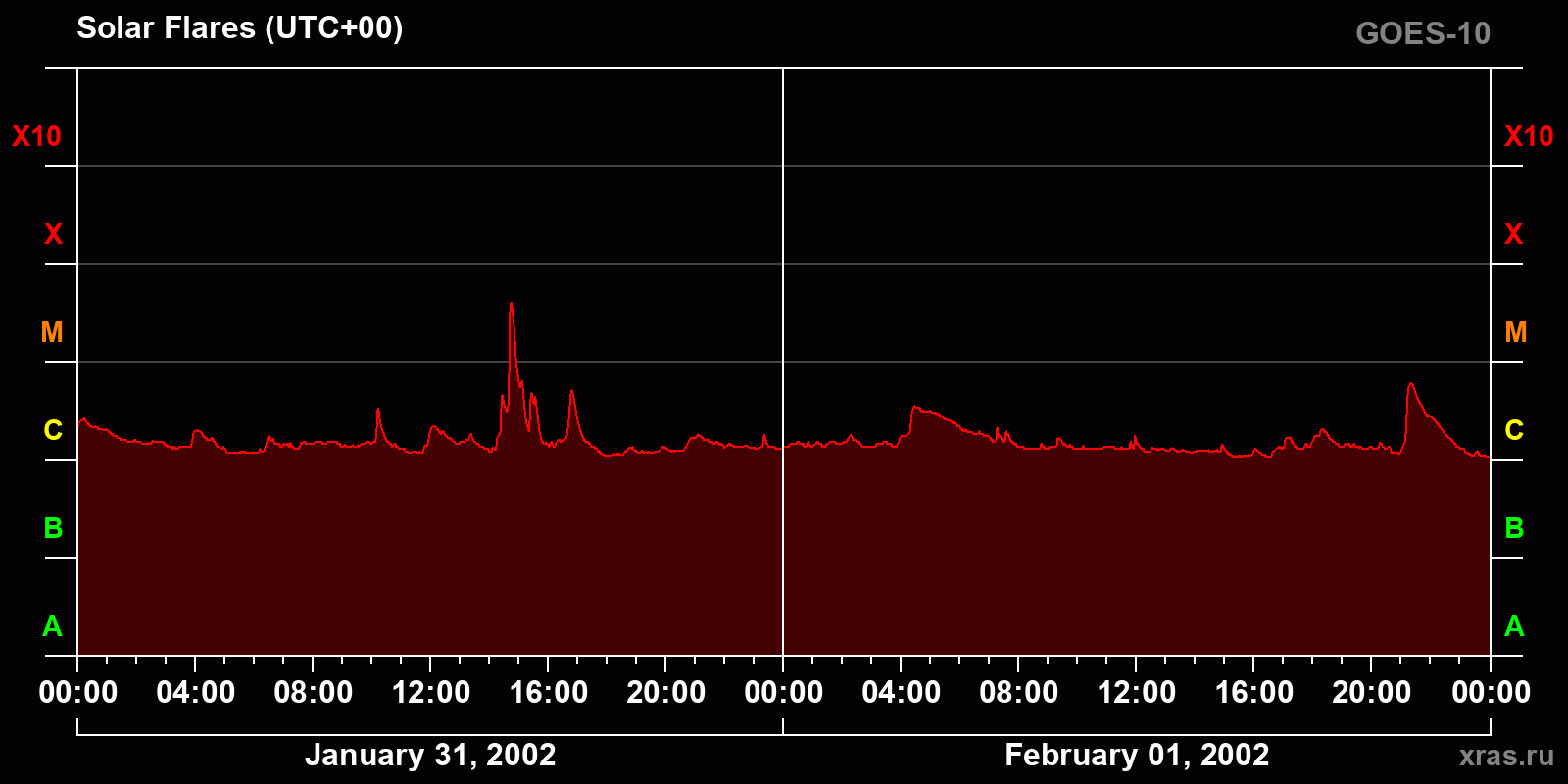 Chart of solar activity from Jan 31, 2002 to Feb 01, 2002
