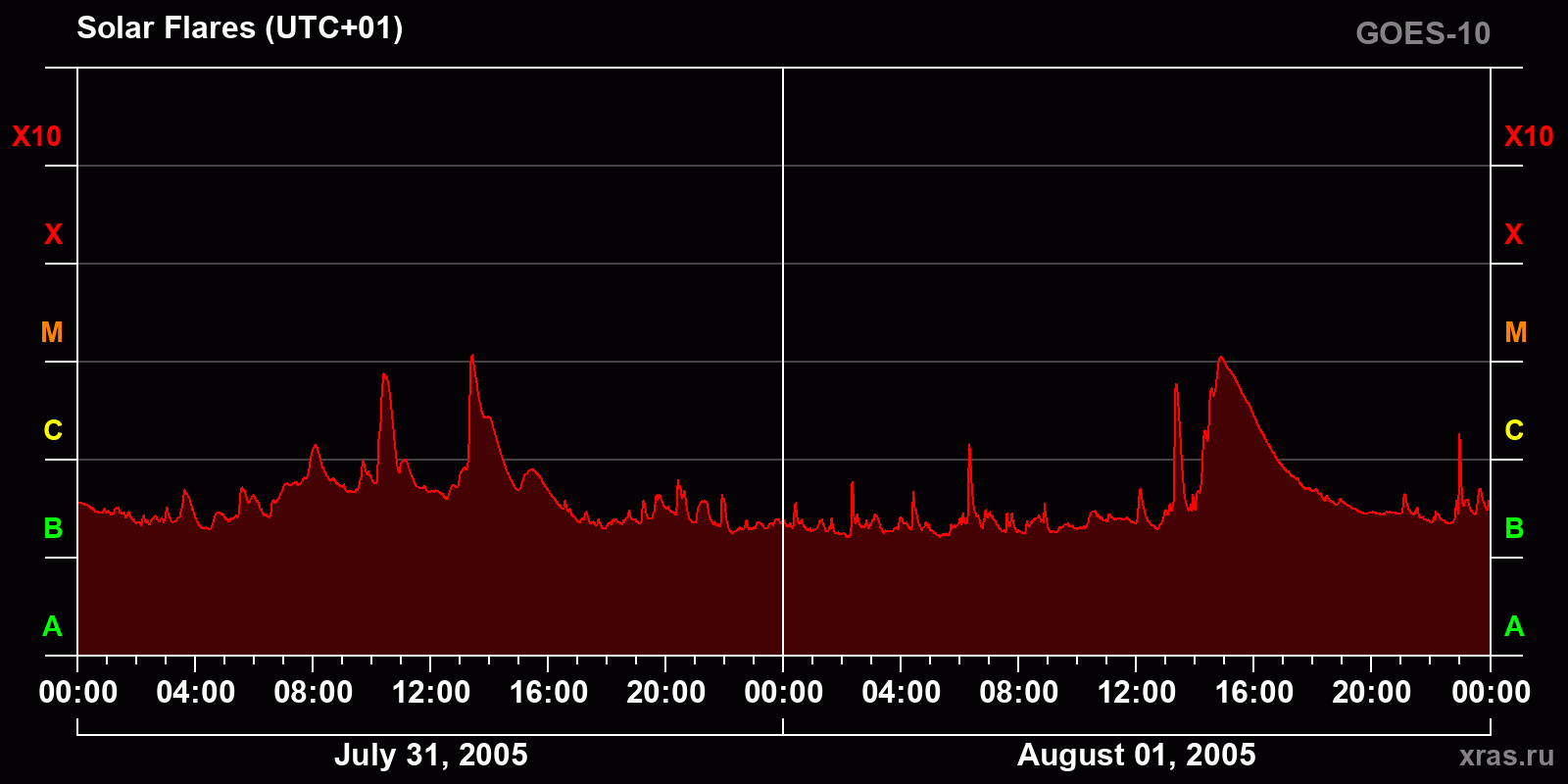 Chart of solar activity from Jul 31, 2005 to Aug 01, 2005