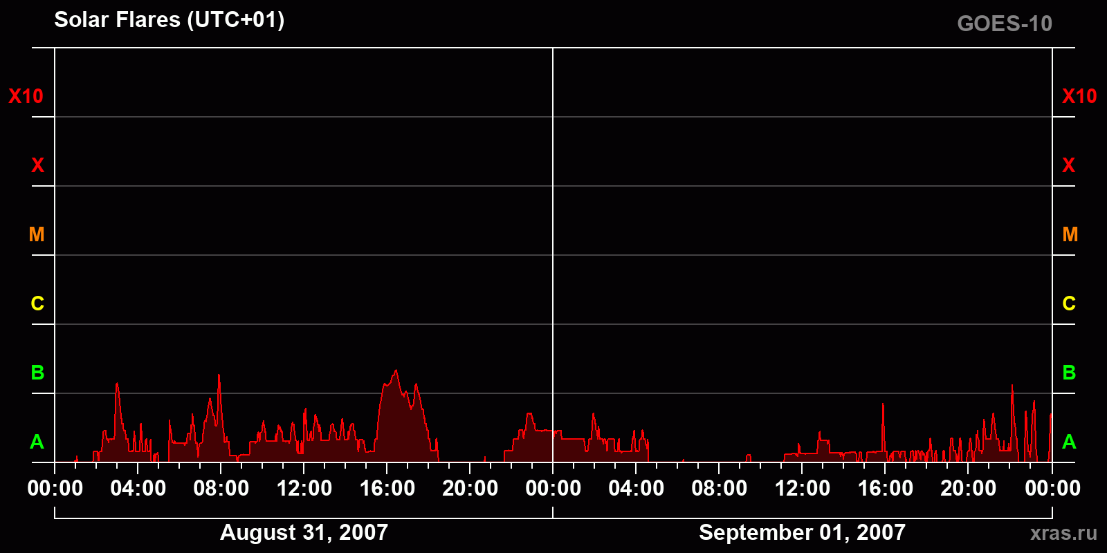 Chart of solar activity from Aug 31, 2007 to Sep 01, 2007