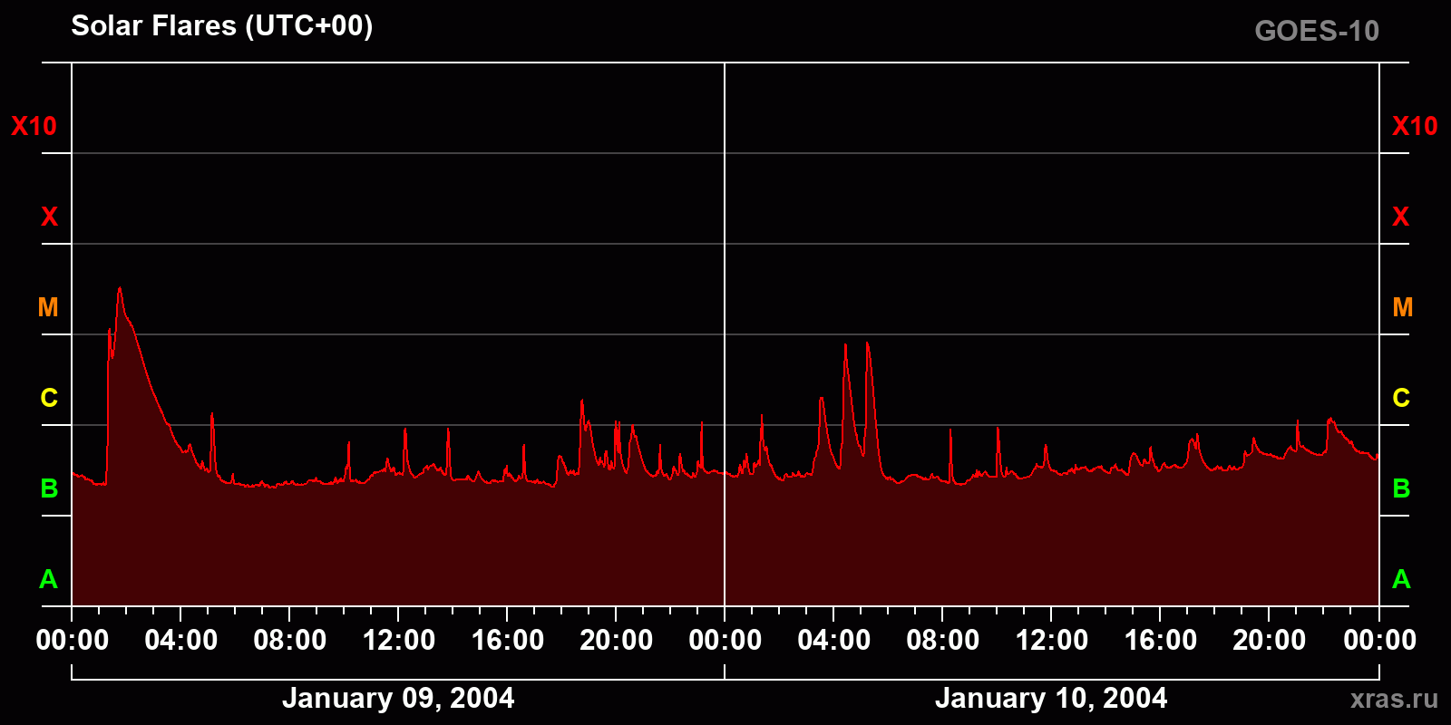 Chart of solar activity from Jan 09, 2004 to Jan 10, 2004