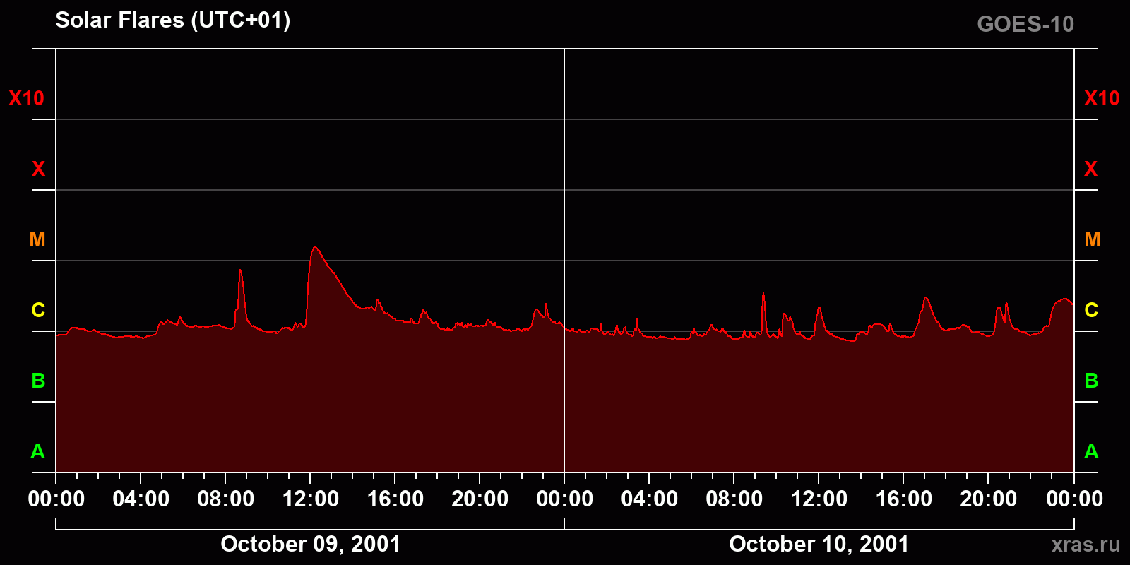 Chart of solar activity from Oct 09, 2001 to Oct 10, 2001