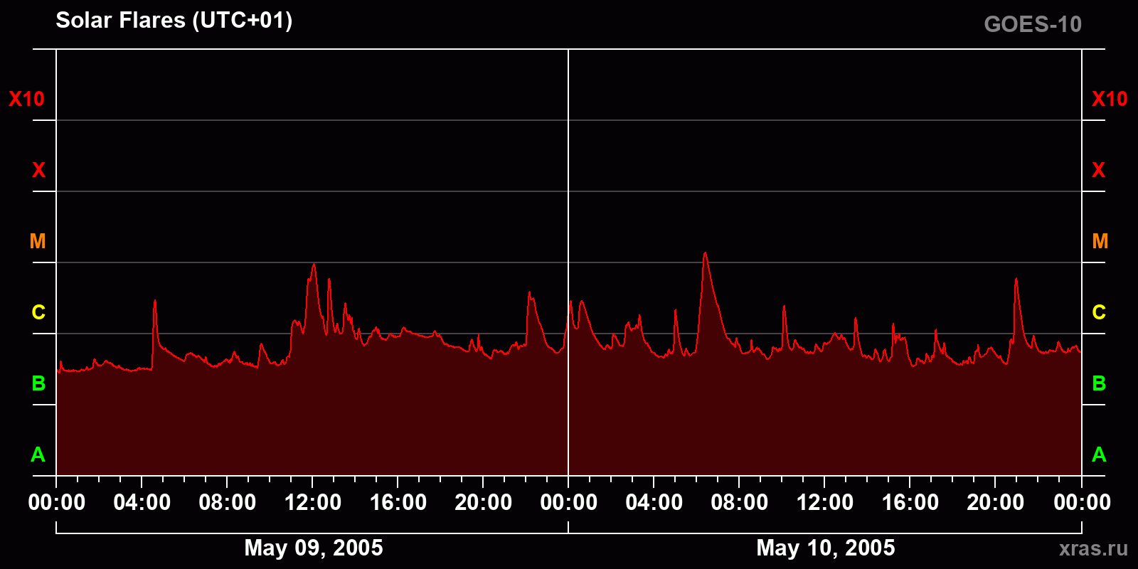 Chart of solar activity from May 09, 2005 to May 10, 2005