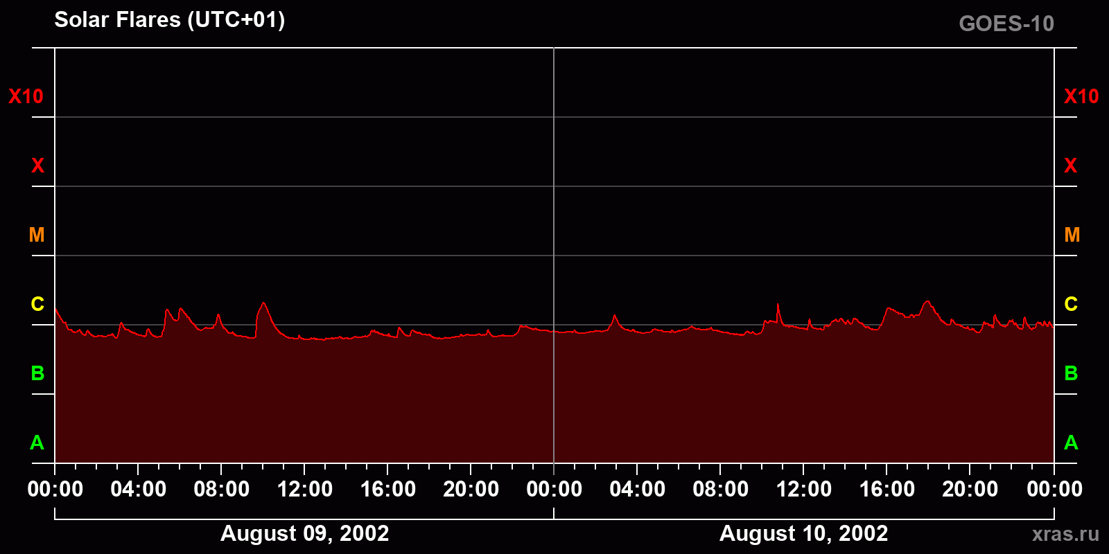 Chart of solar activity from Aug 09, 2002 to Aug 10, 2002