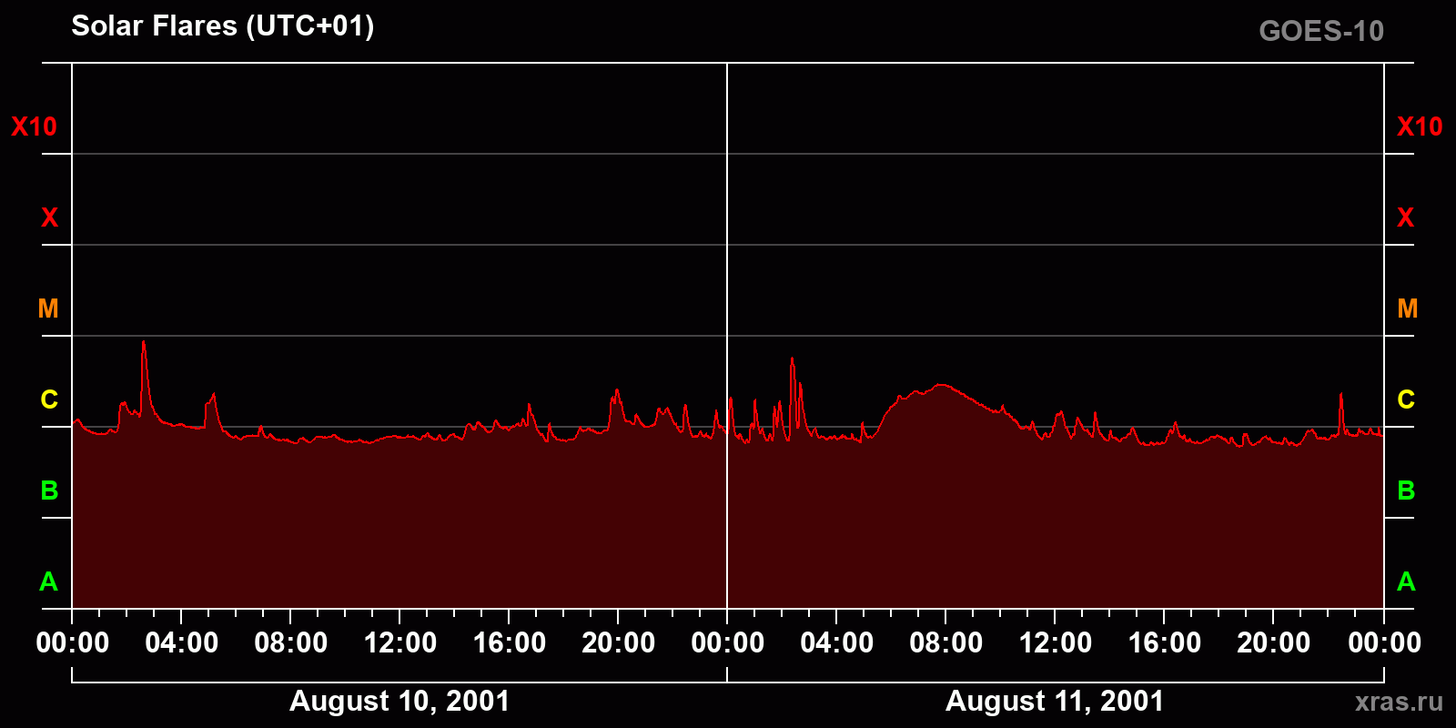 Chart of solar activity from Aug 10, 2001 to Aug 11, 2001