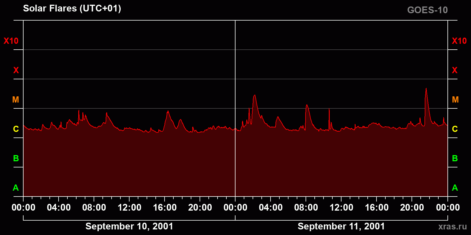 Chart of solar activity from Sep 10, 2001 to Sep 11, 2001