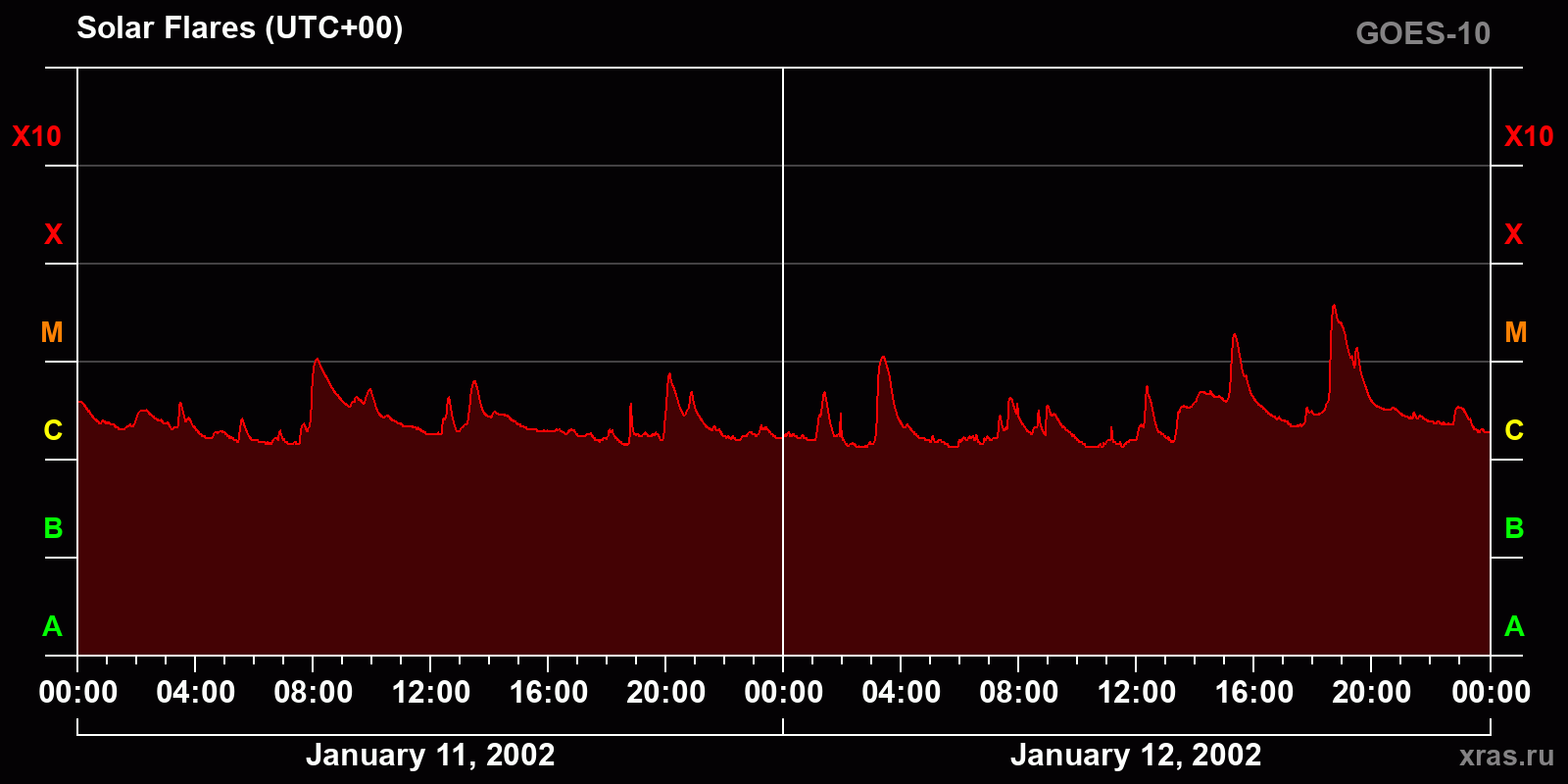 Chart of solar activity from Jan 11, 2002 to Jan 12, 2002