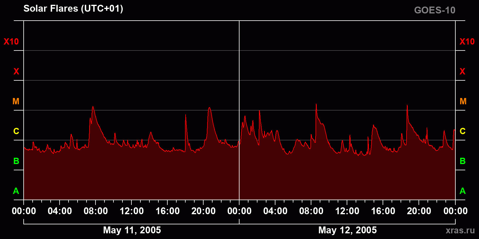Chart of solar activity from May 11, 2005 to May 12, 2005