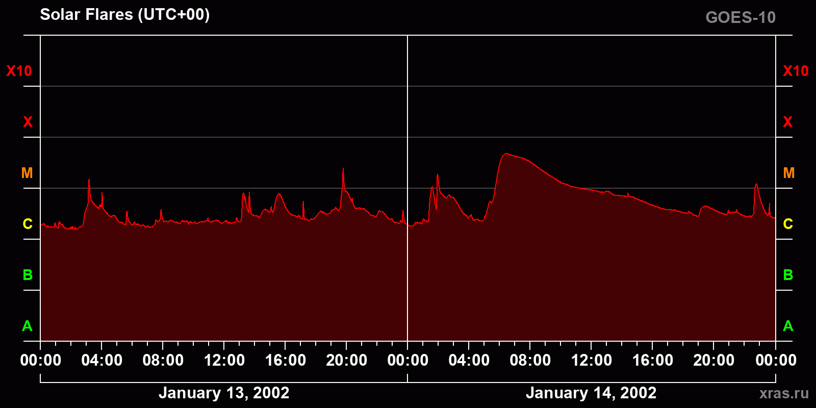 Chart of solar activity from Jan 13, 2002 to Jan 14, 2002