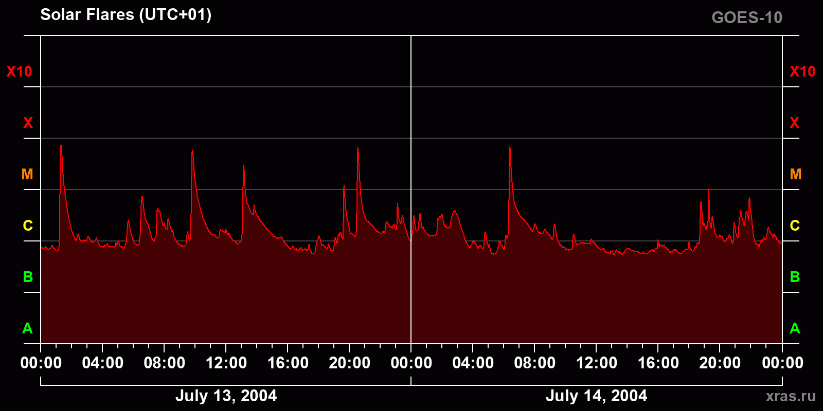 Chart of solar activity from Jul 13, 2004 to Jul 14, 2004