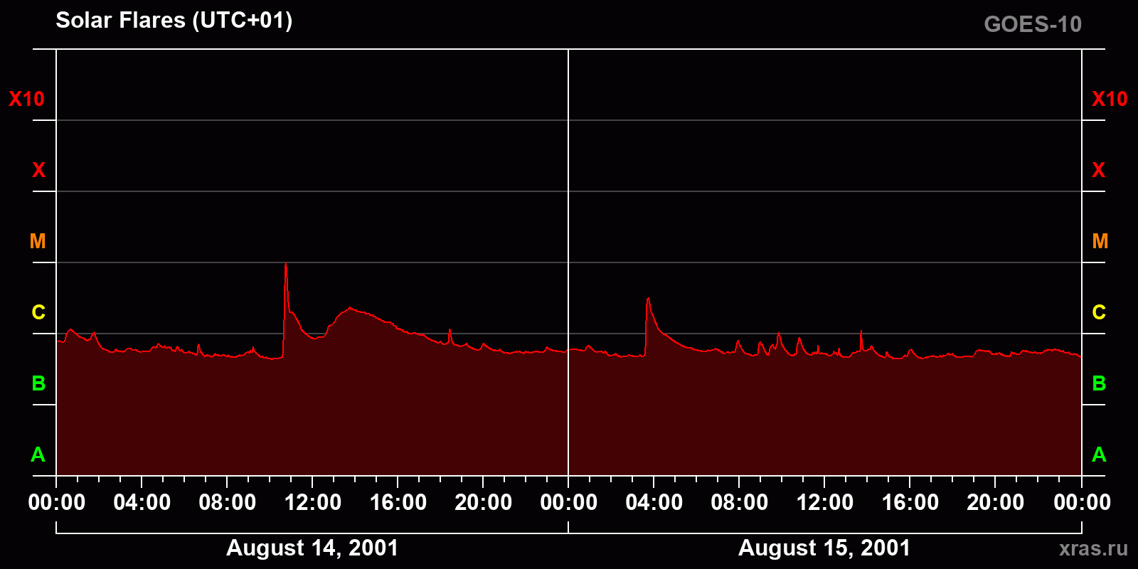 Chart of solar activity from Aug 14, 2001 to Aug 15, 2001