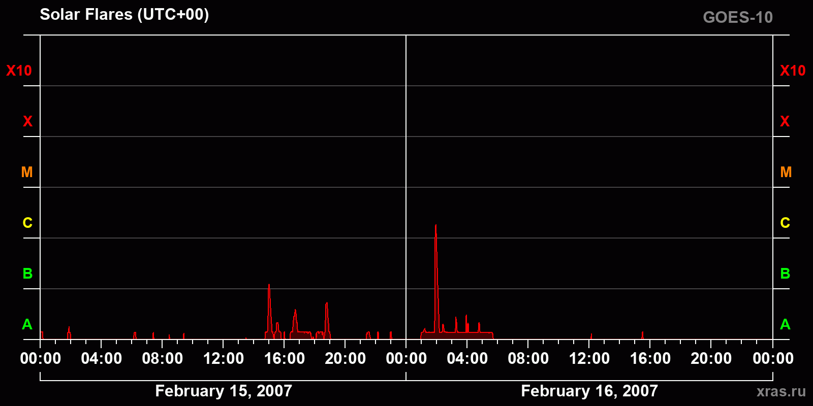 Chart of solar activity from Feb 15, 2007 to Feb 16, 2007