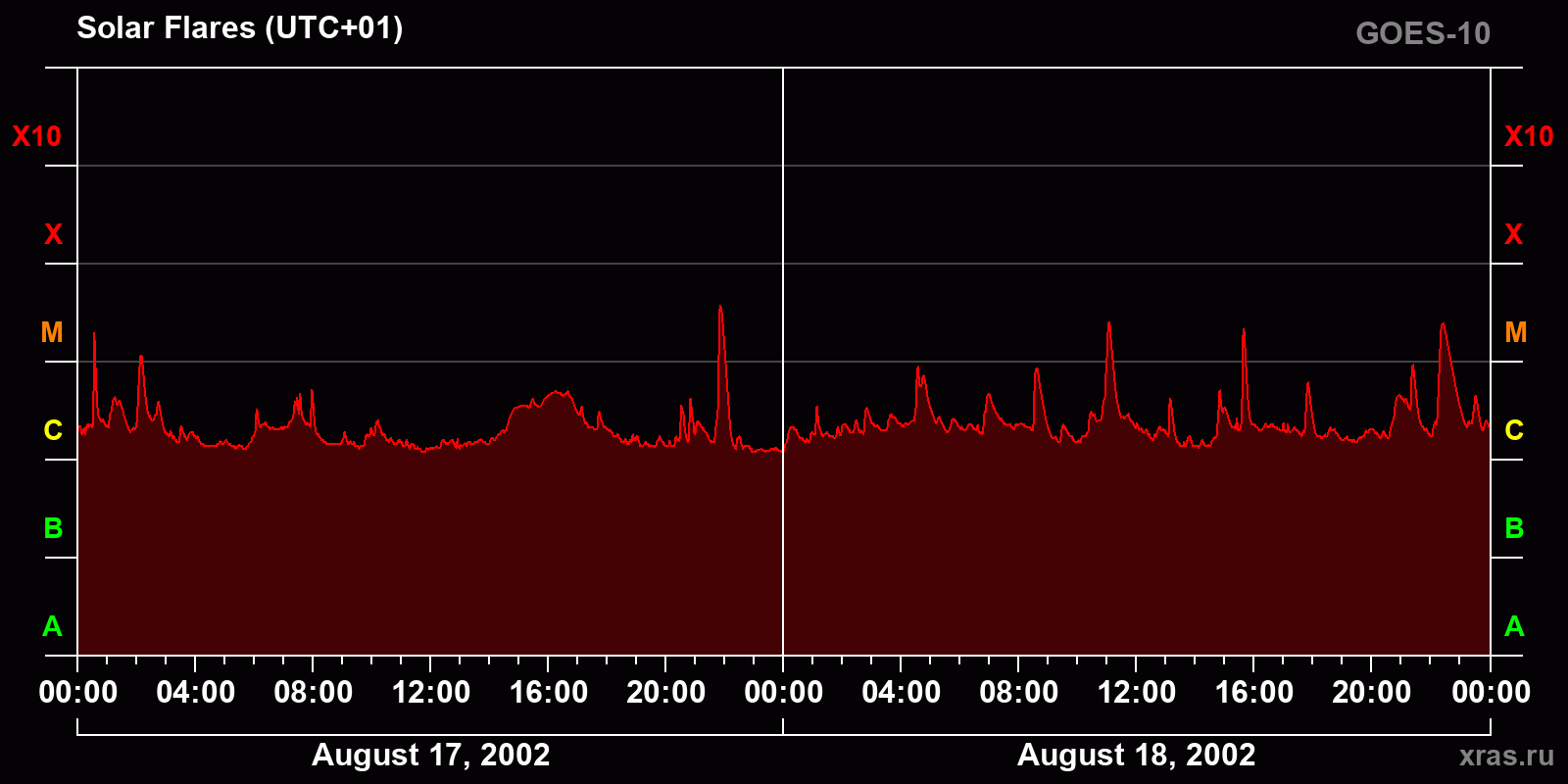 Chart of solar activity from Aug 17, 2002 to Aug 18, 2002