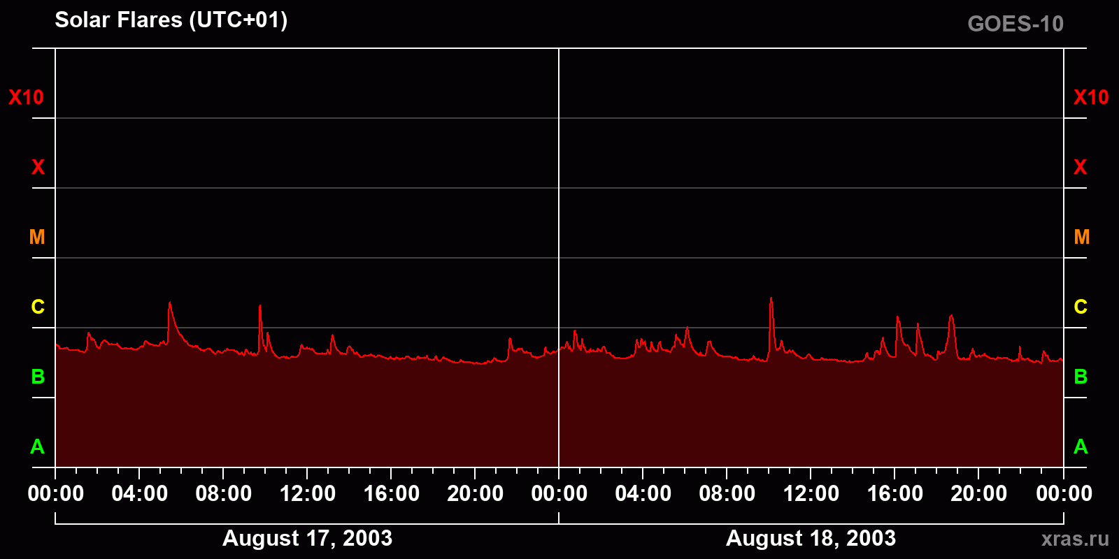 Chart of solar activity from Aug 17, 2003 to Aug 18, 2003