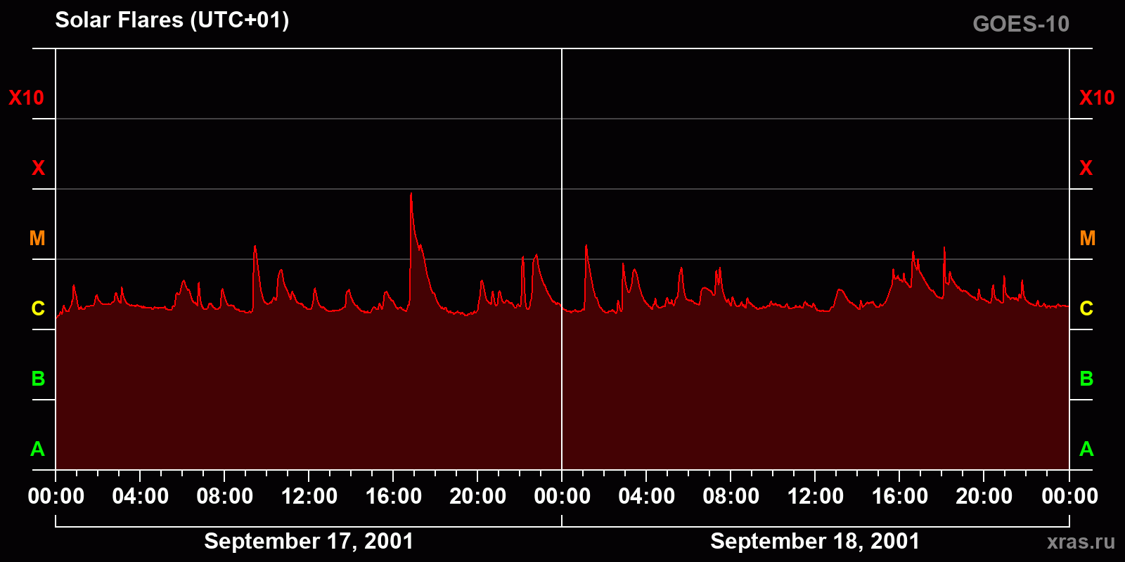 Chart of solar activity from Sep 17, 2001 to Sep 18, 2001