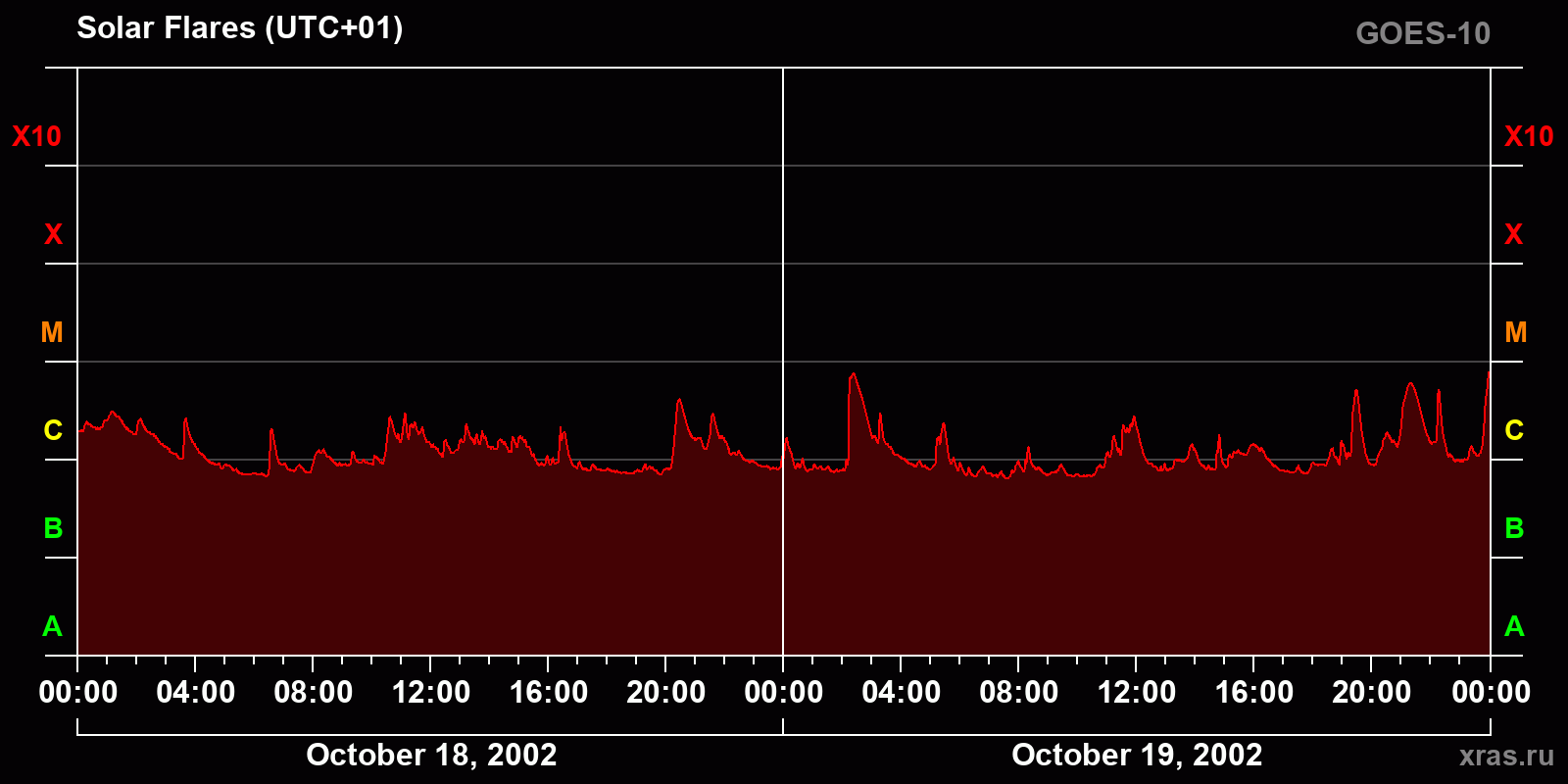 Chart of solar activity from Oct 18, 2002 to Oct 19, 2002