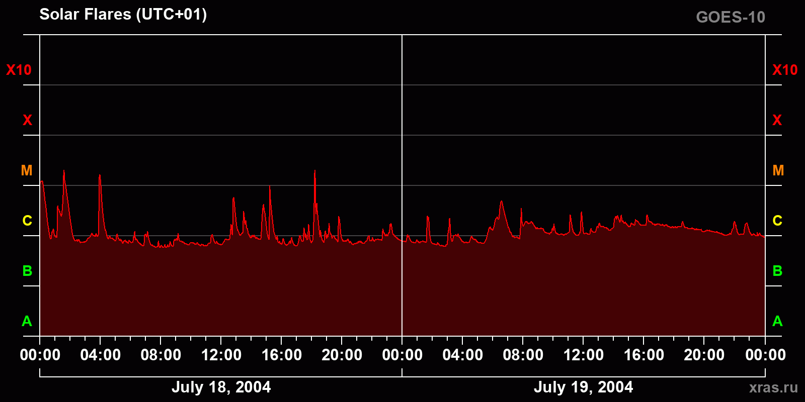 Chart of solar activity from Jul 18, 2004 to Jul 19, 2004