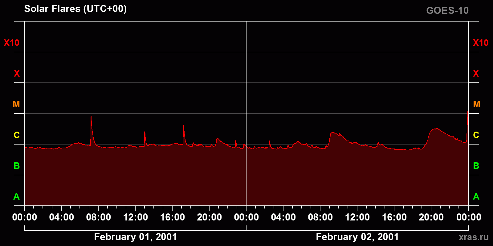 Chart of solar activity from Feb 01, 2001 to Feb 02, 2001