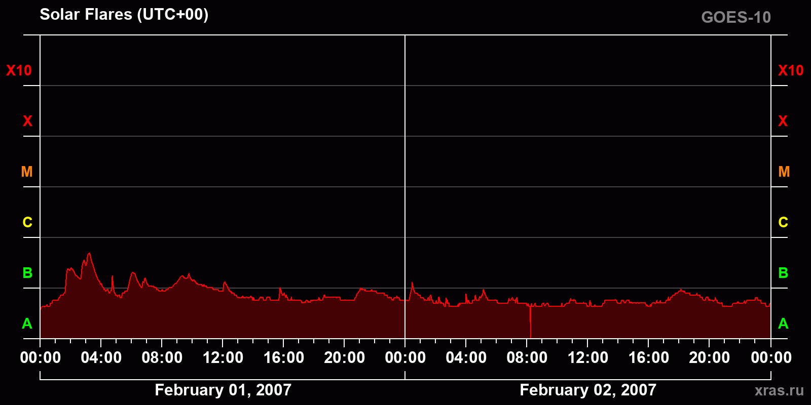 Chart of solar activity from Feb 01, 2007 to Feb 02, 2007